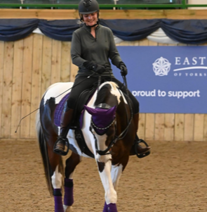 Chester:I am rather late to the dressage game, Chester being purchased to hunt, we soon realised he just did not have the brain to cope! He is not the most straightforward horse and he struggles, like a lot of Gelderlanders, with his anxiety however he is a real gentle soul and very much a one person horse. He is also extremely clever, unties everything, undoes doors and has been spotted utilising a branch to knock apples off the trees!He has taken quite a while to settle but with our fantastic trainers Emma Jablonski and Bobby Hayler-Wright we are out competing at Novice.